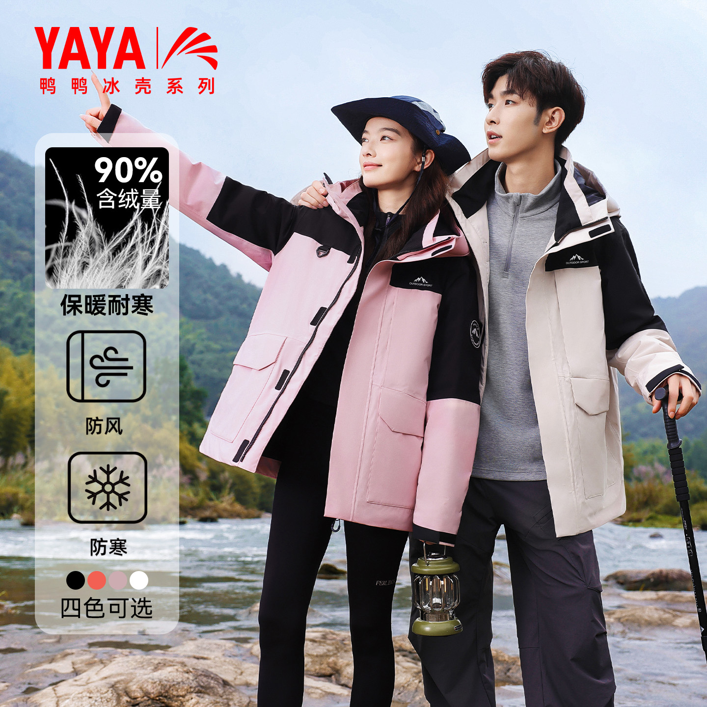 鸭鸭户外羽绒服男女同款2025冬季新款撞色休闲情侣款冲锋短款外套