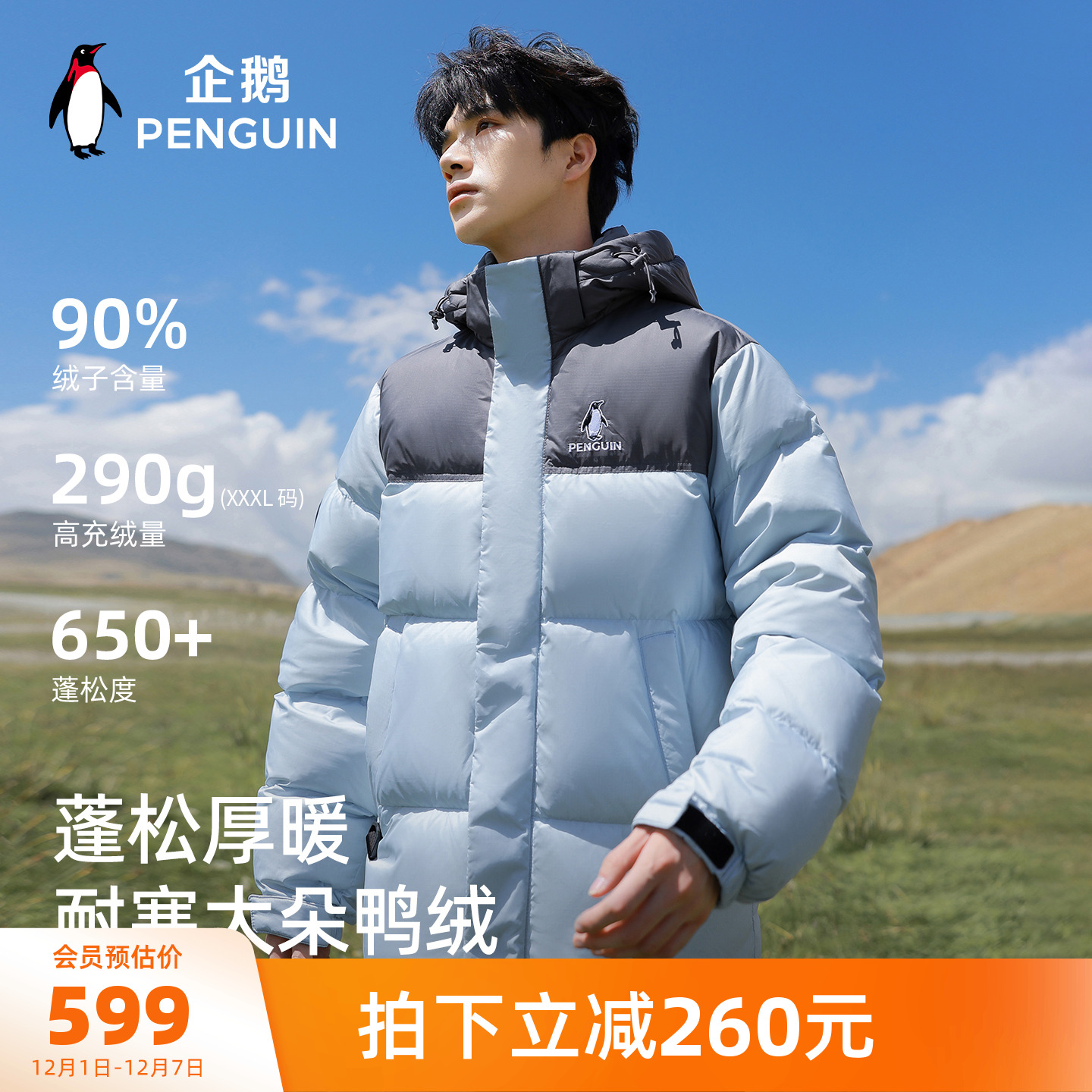 企鹅户外羽绒服男女中长款2025秋冬过膝防风保暖连帽面包服外套