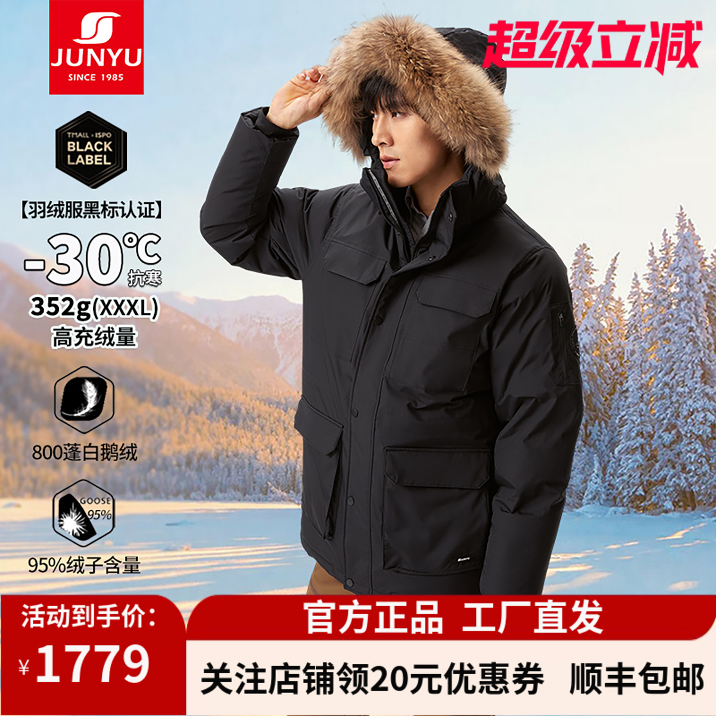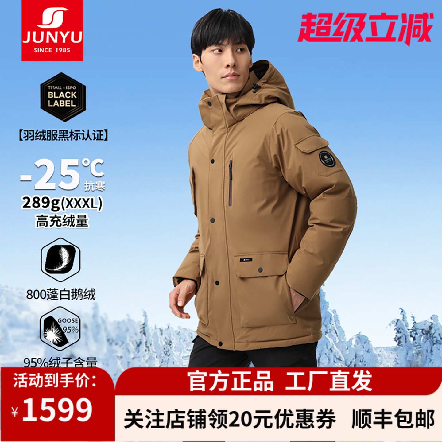 【黑标】君羽户外羽绒服男中长款800蓬白鹅绒冬加厚大鹅工装52035