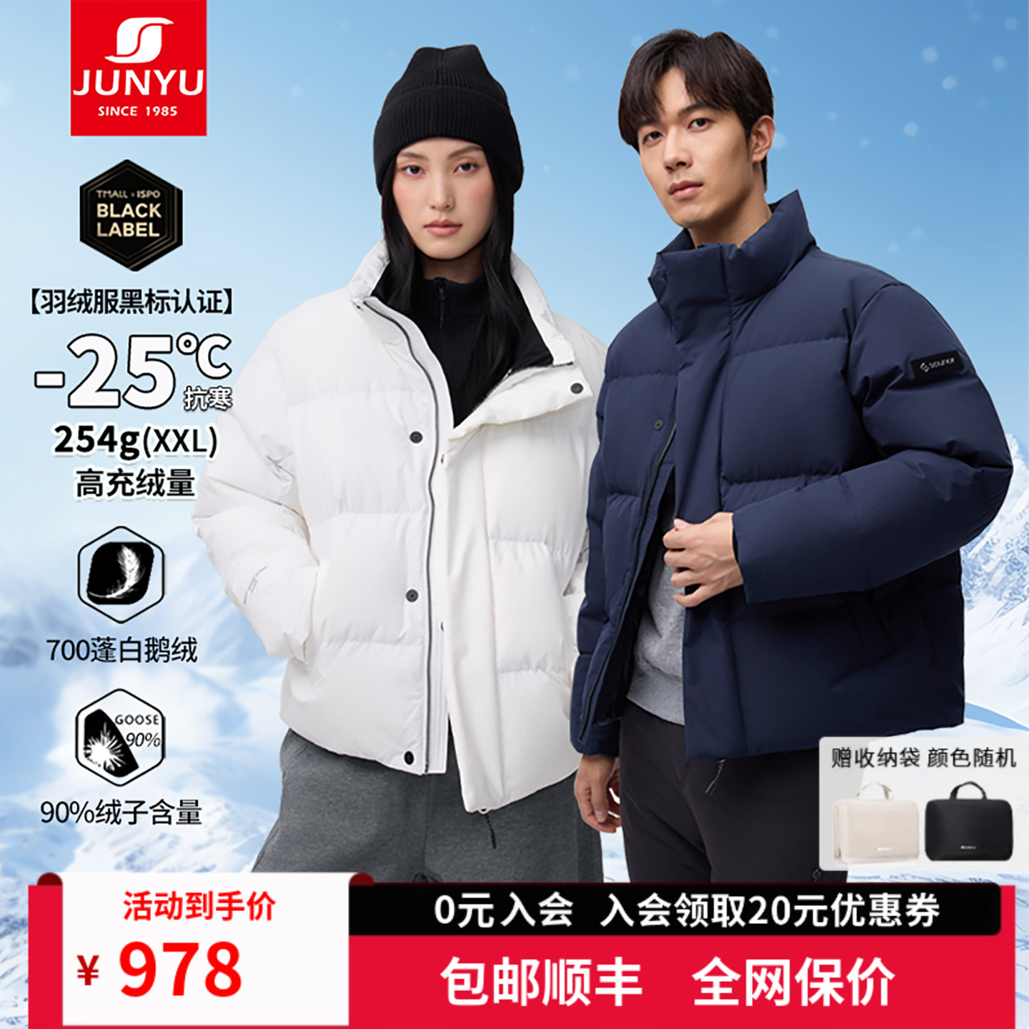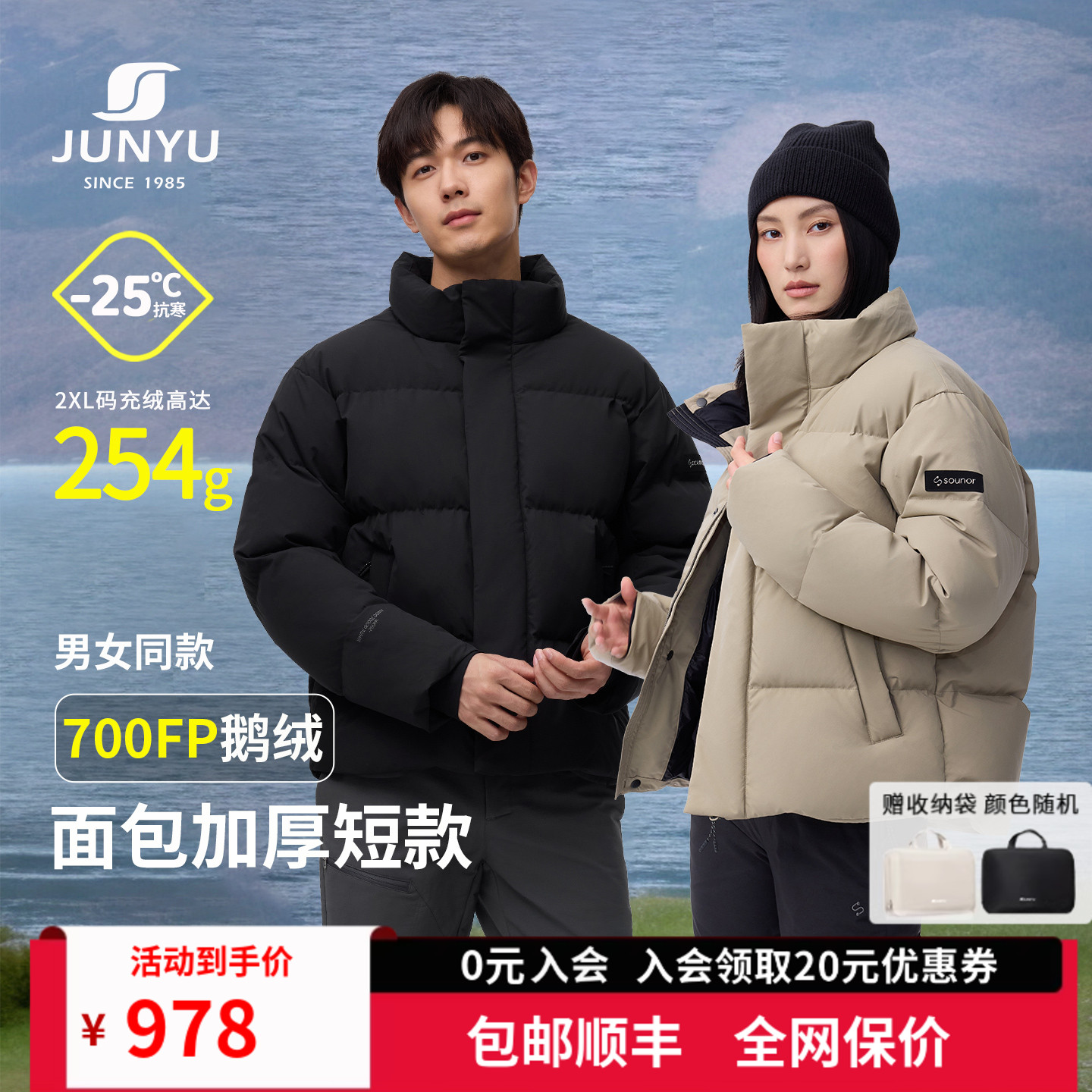 君羽户外羽绒服男女同款时尚立领短款面包服冬季加厚700蓬鹅绒服