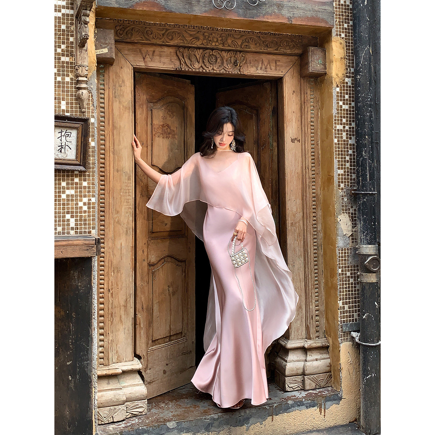 刘智贤【粉纱约会】粉色薄雾罩衫吊带连衣裙飘逸度假沙滩裙礼服裙