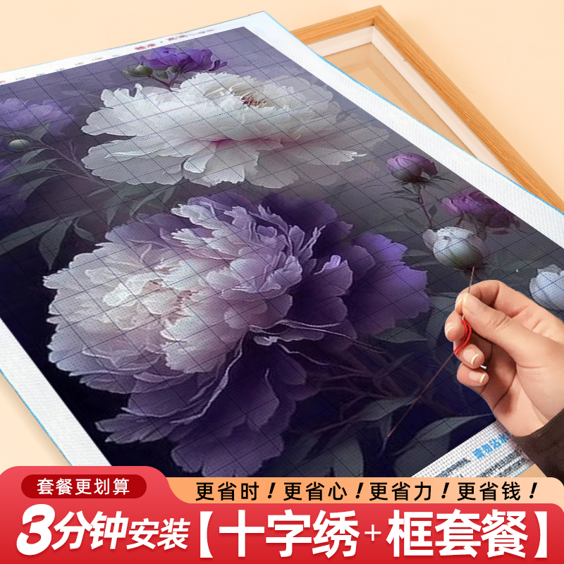 带框餐厅5d牡丹花卉钻石画满钻2026新款客厅粘钻石十字绣简约风景