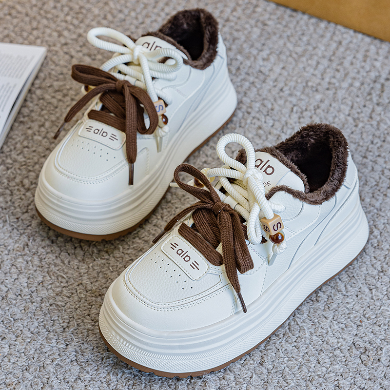 真皮大码女鞋41-43加绒保暖小白鞋秋冬新款厚底休闲平板鞋棉鞋42