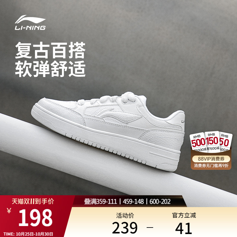 李宁板鞋男款软底黑色休闲鞋舒适软弹百搭小白鞋女子鞋平板运动鞋