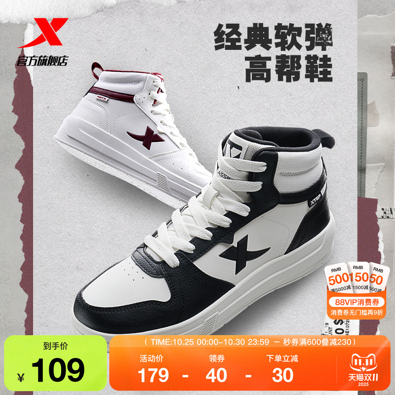 特步板鞋男鞋冬季新款百搭休闲鞋保暖高帮板鞋情侣运动鞋潮流鞋子