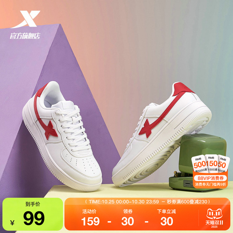 特步空军一号情侣板鞋男鞋冬季潮流休闲鞋运动鞋女鞋子厚底小白鞋