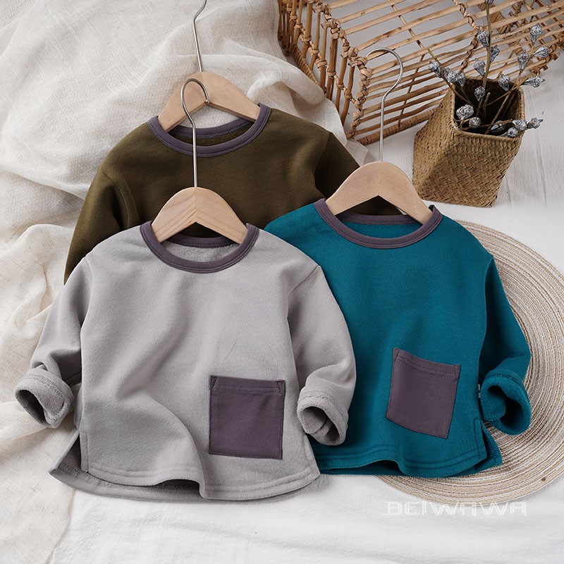 韩国童装男童宝宝加绒休闲卫衣 小童插肩袖保暖宽松撞色上衣T恤