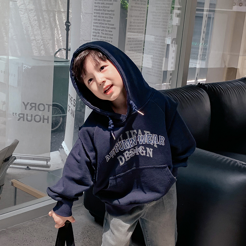 韩国宝宝童装新款男童冬季加绒连帽衫卫衣中小童字母印花休闲上衣