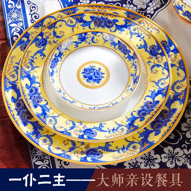 景德镇56头骨瓷欧式餐具碗碟套装盘勺 一仆二主——大师设计餐具