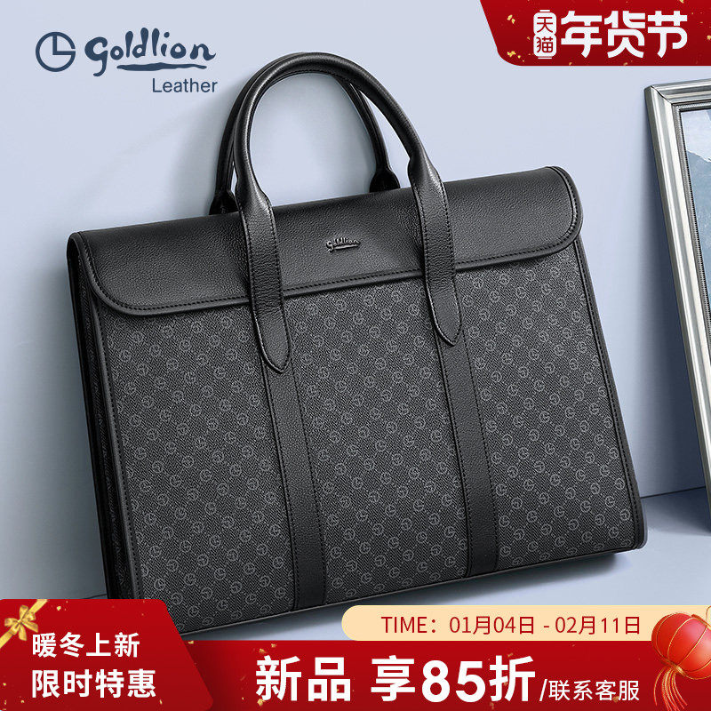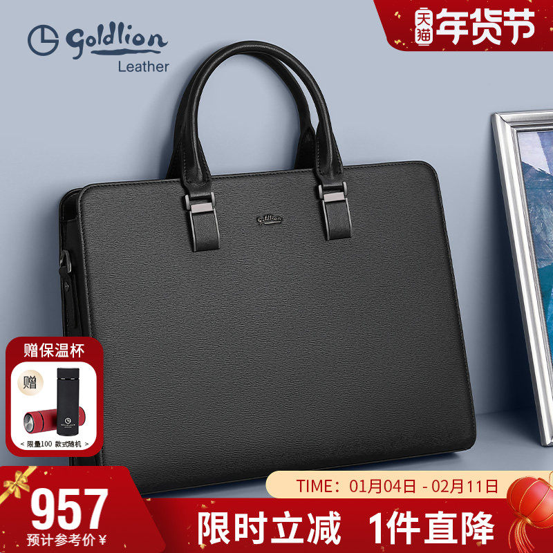 金利来新款商务公文包男士真皮大容量手提包头层牛皮办公出差男包