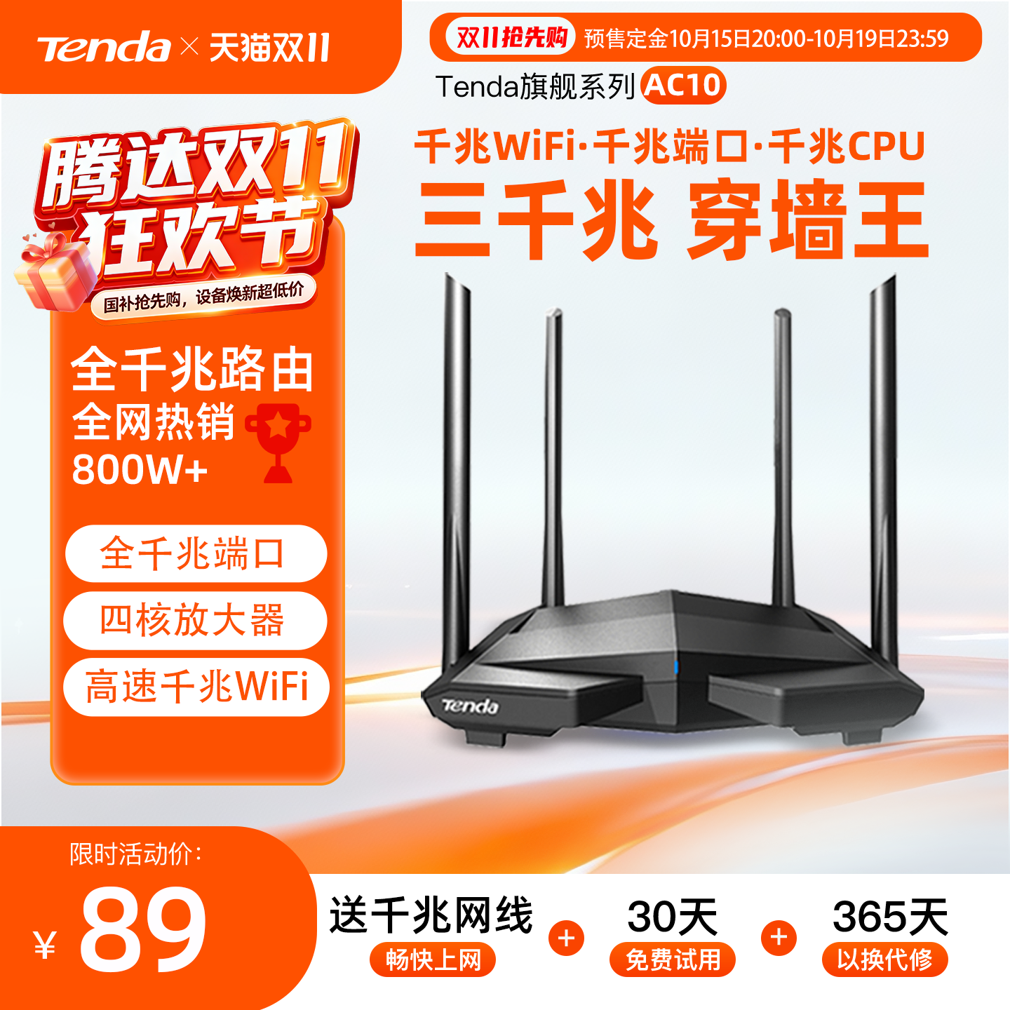 Tenda腾达路由器家用高速千兆穿墙王无线wifi信号增强AC1200家庭漏油器电信移动爆款AC10【极速发货】