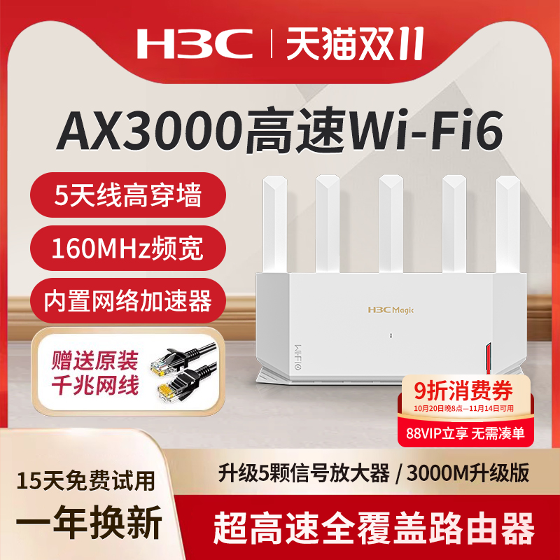 H3C/新华三WiFi6千兆无线路由器NX30Pro家用高速全屋覆盖大户型穿墙王高速5G双频电竞路由全千兆端口AX3000M