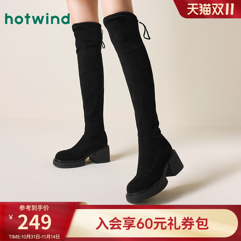 热风厚底长筒靴女款2024年冬季新款显瘦长靴过膝弹力靴显高袜靴