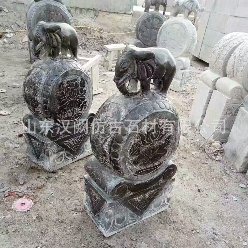 石雕门墩抱鼓石一对家用门口青石狮子象麒麟门鼓仿古做旧石鼓石墩