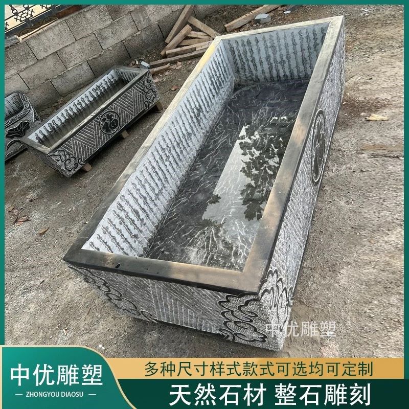 青石彷古石雕石头水槽花盆流水鱼缸养鱼庭院摆件装饰户外石缸石槽
