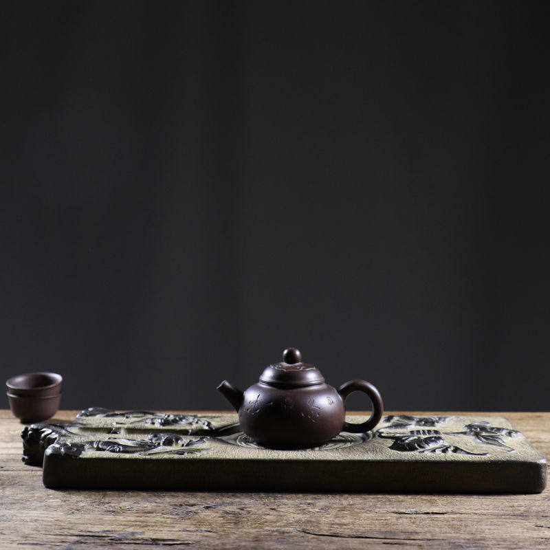 仿古石雕青石琴棋书画石鼓茶壶底座杯垫中式复古茶席摆件摆设装饰