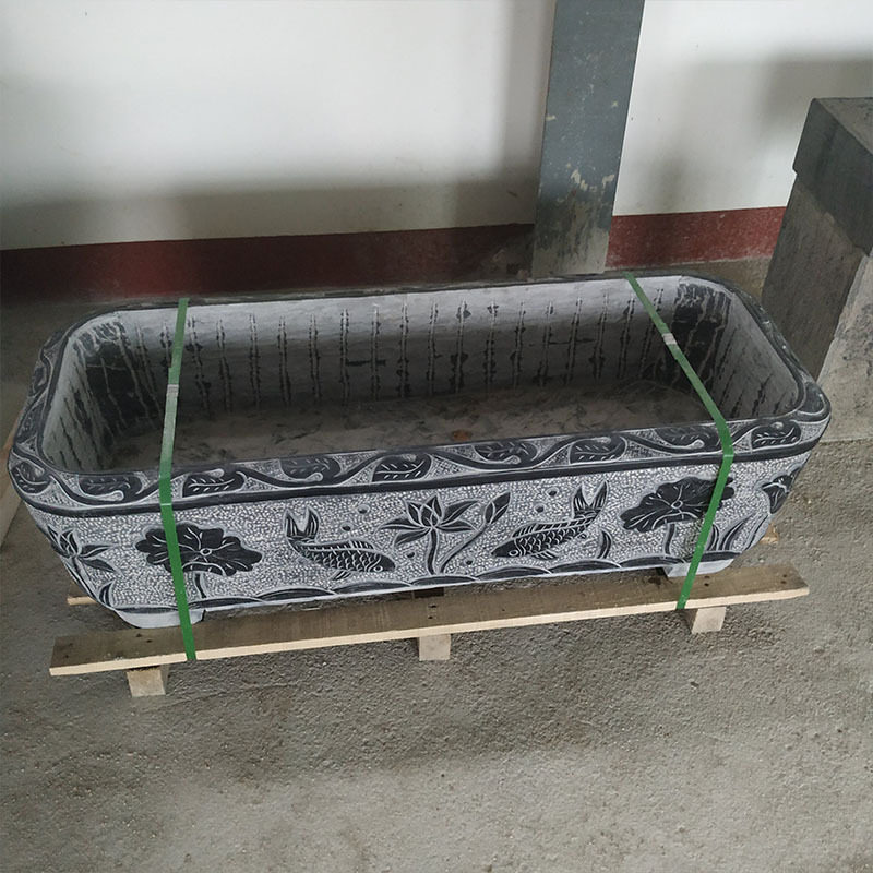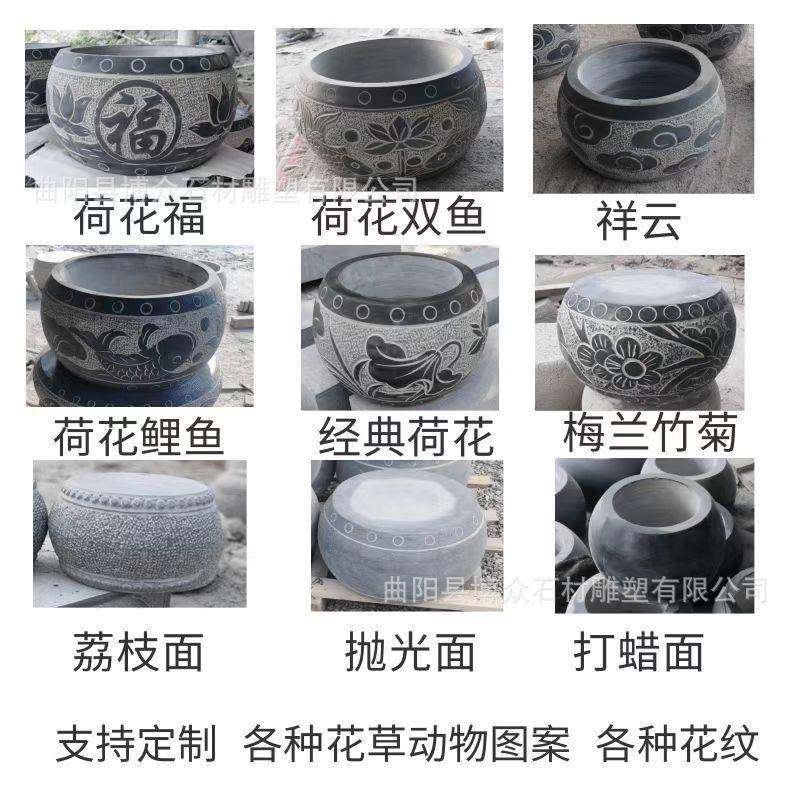 青石鱼缸仿古石雕大理石荷花锦鲤缸天然石头庭院造景花盆圆形水缸