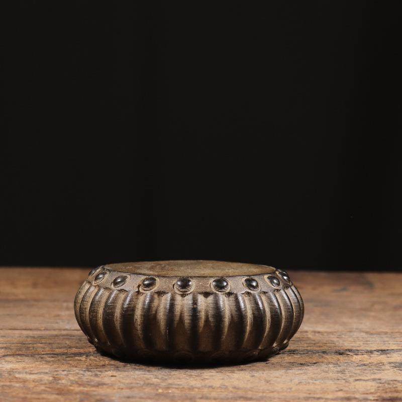 仿古石雕天然青石雕铆钉多棱石鼓杯垫壶垫复古陈设石雕小摆件包邮