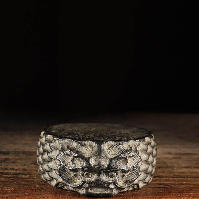 仿古石雕天然青石手工雕刻龙头石鼓壶承中式复古陈设茶席装饰摆件
