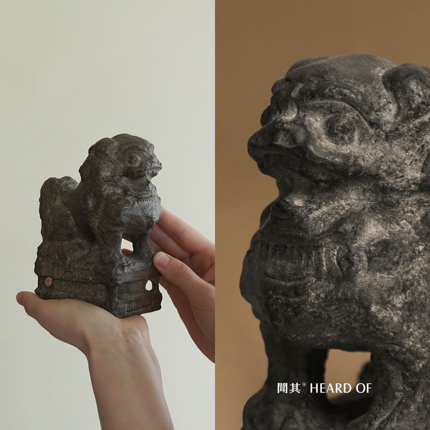 聞其 东方古韵"瑞兽呈祥"天然青石仿古石雕狮子民宿书房开运摆件