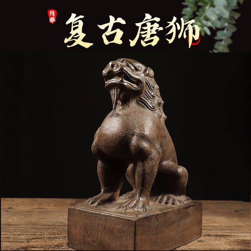 仿古石雕复古山西青石民俗怀旧雕刻唐狮摆件收藏茶席中式怀旧摆件