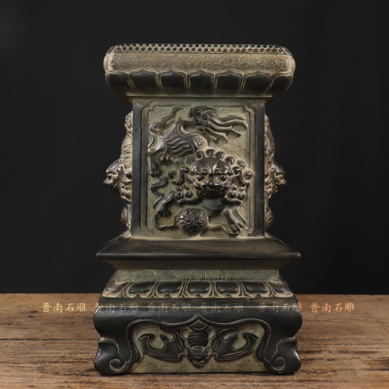 仿古石雕山西青石民俗怀旧手工雕刻神兽柱墩石墩茶壶底座壶拖摆设