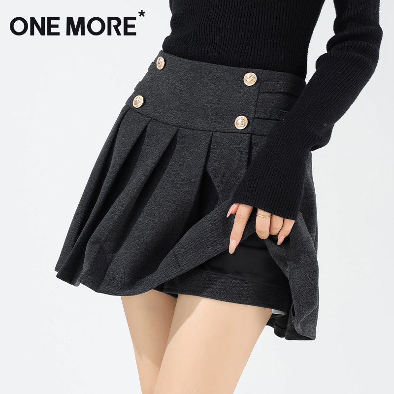 one more半身裙女士秋冬季灰色短裙2025早秋新款女装毛呢百褶裙Y