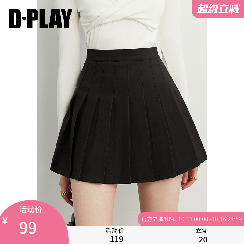 DPLAY【惠品】2025秋季JK元气黑色半身裙女高腰加厚毛呢百褶裙