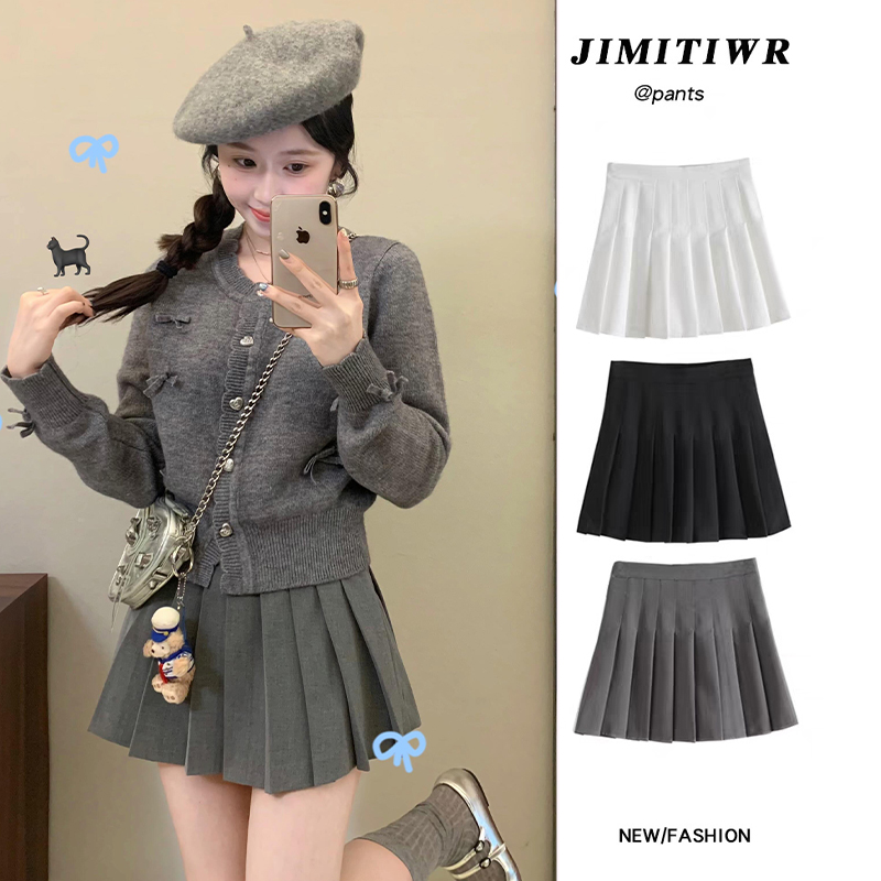 白色百褶裙女2025秋季新款a字显瘦小个子高腰毛呢包臀jk半身短裙