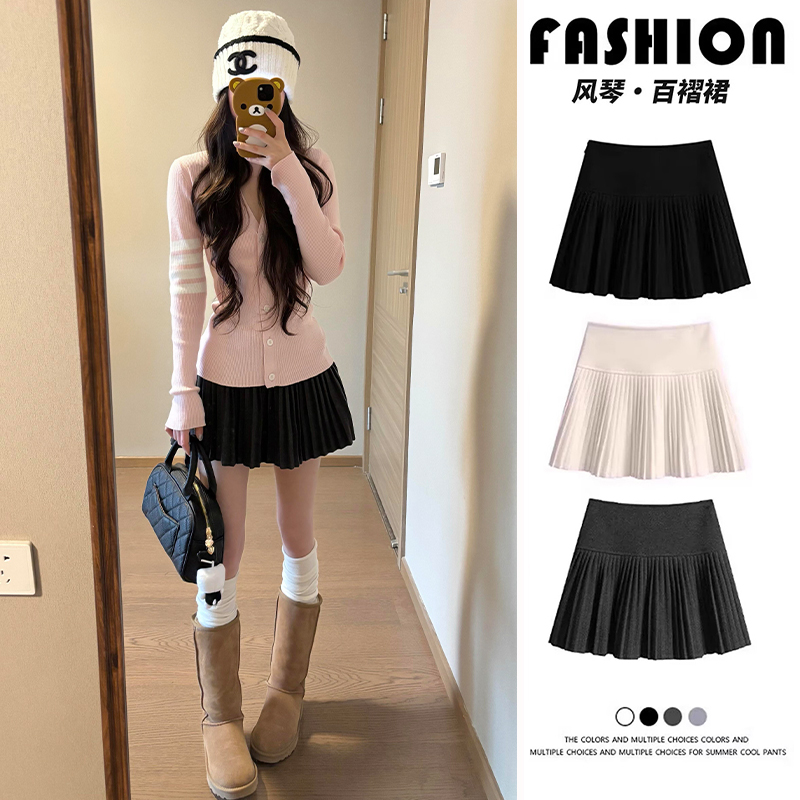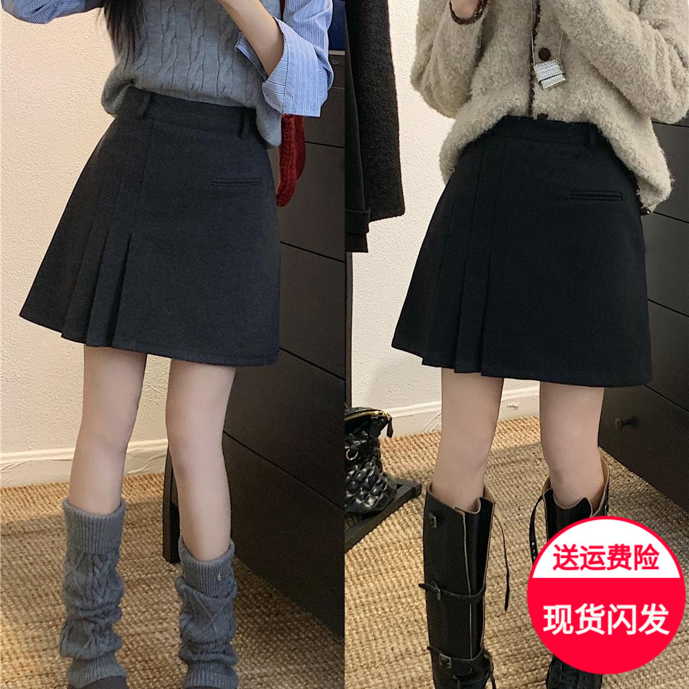 大码高腰毛呢百褶裙女设计感防走光a字短裙加厚显瘦学院风半身裙