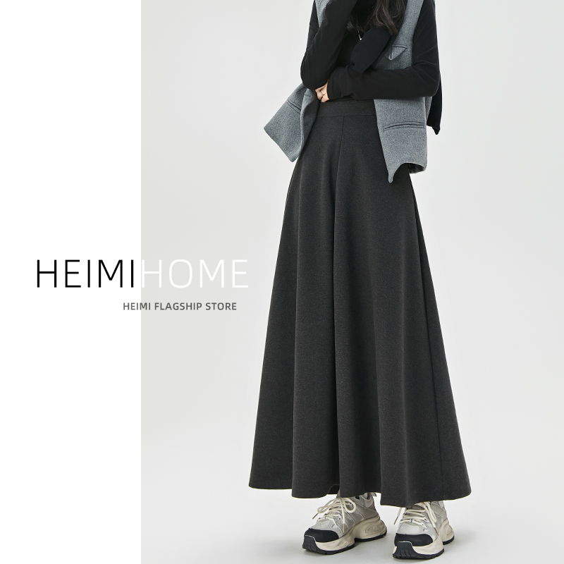 - 毛呢 半身裙 长