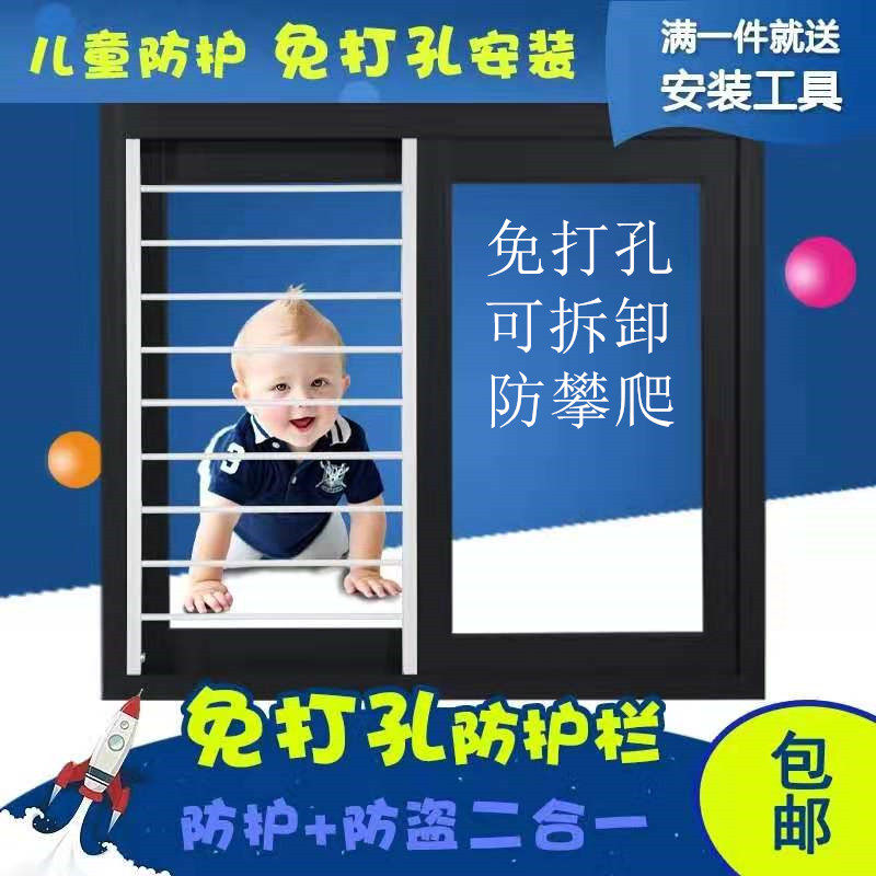 窗户防护栏家用自装免打孔儿童防坠平开高层安全栏杆阳台防盗护网