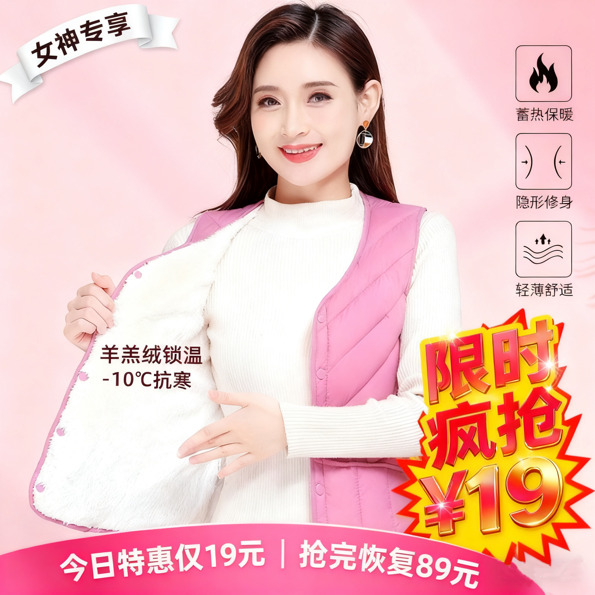 秋冬新款保暖羊羔绒修身保暖女羽绒棉背心加绒加厚女坎肩马甲显瘦