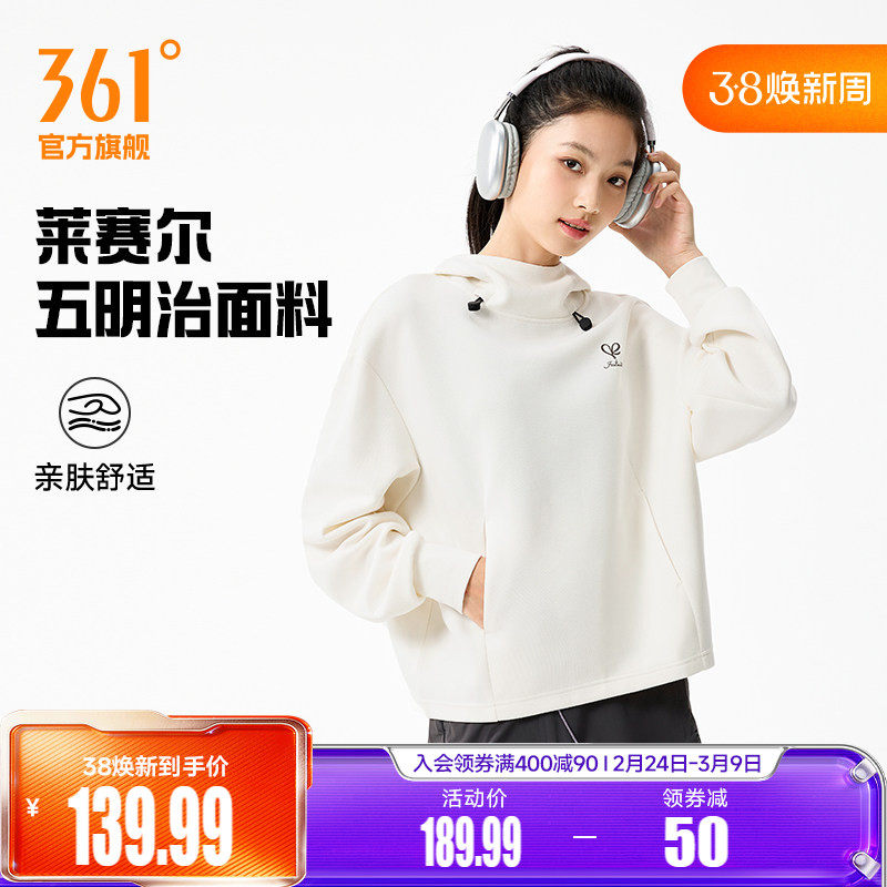 361运动卫衣女2025秋冬新款连帽宽松套头衫女士莱赛尔五明治卫衣