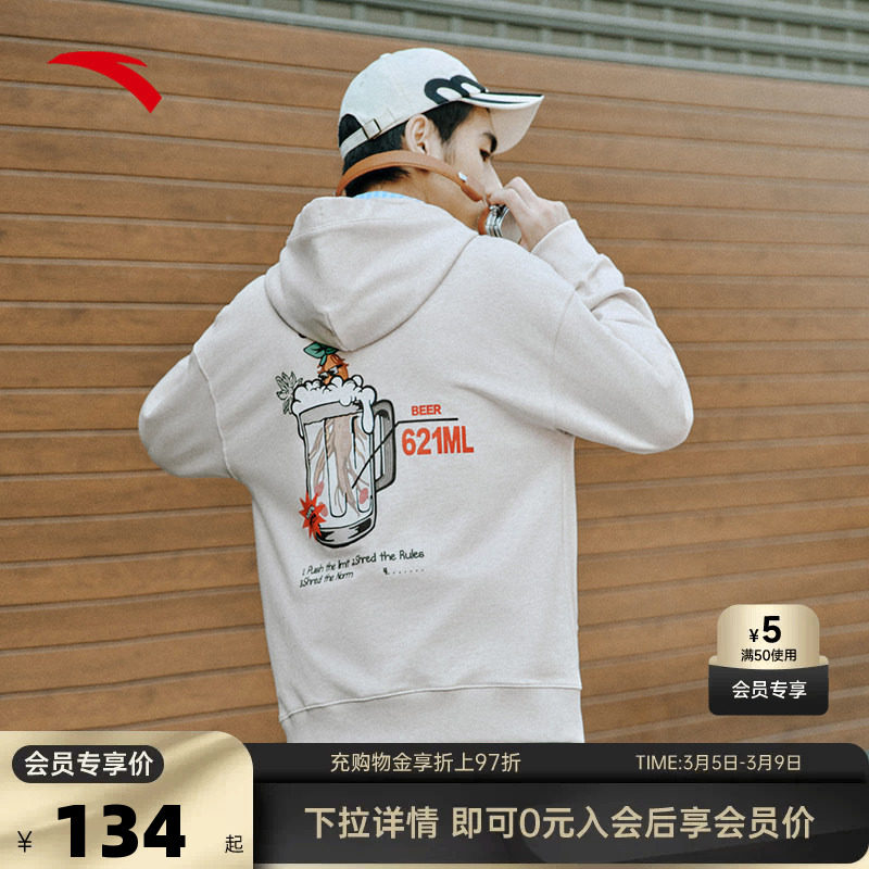 安踏情侣连帽卫衣男女同款春季潮流印花松弛感宽松上衣172538702