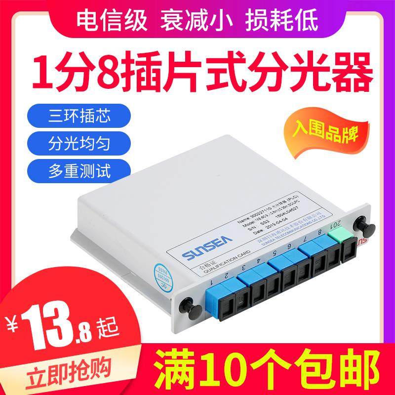 插片式光纤分光器1分/2/4/8/16/32/64插卡式光分路器方口SC/UPC/PLC一分/二/四/八运营商1比8电信级