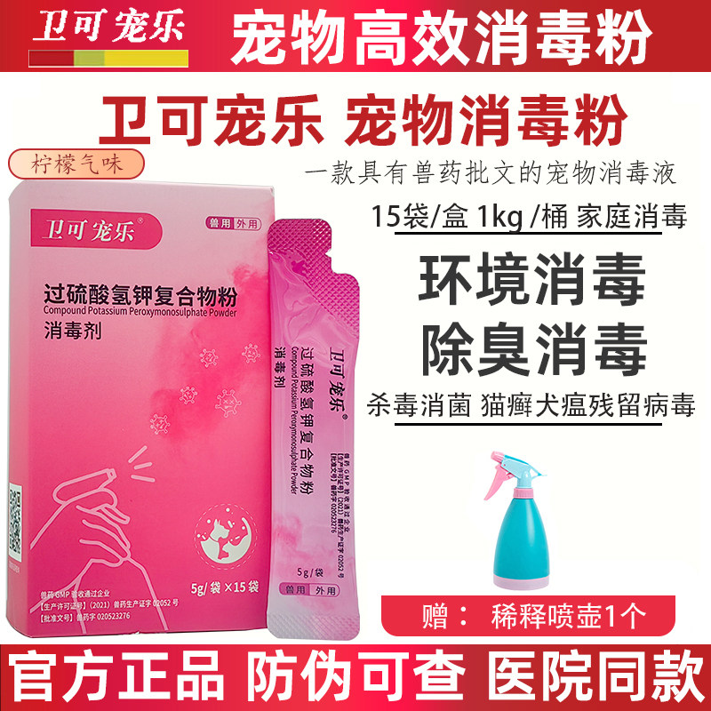 卫可宠乐宠物消毒剂除臭粉液过硫酸氢钾犬猫瘟细小鼻支猫狗癣螨虫