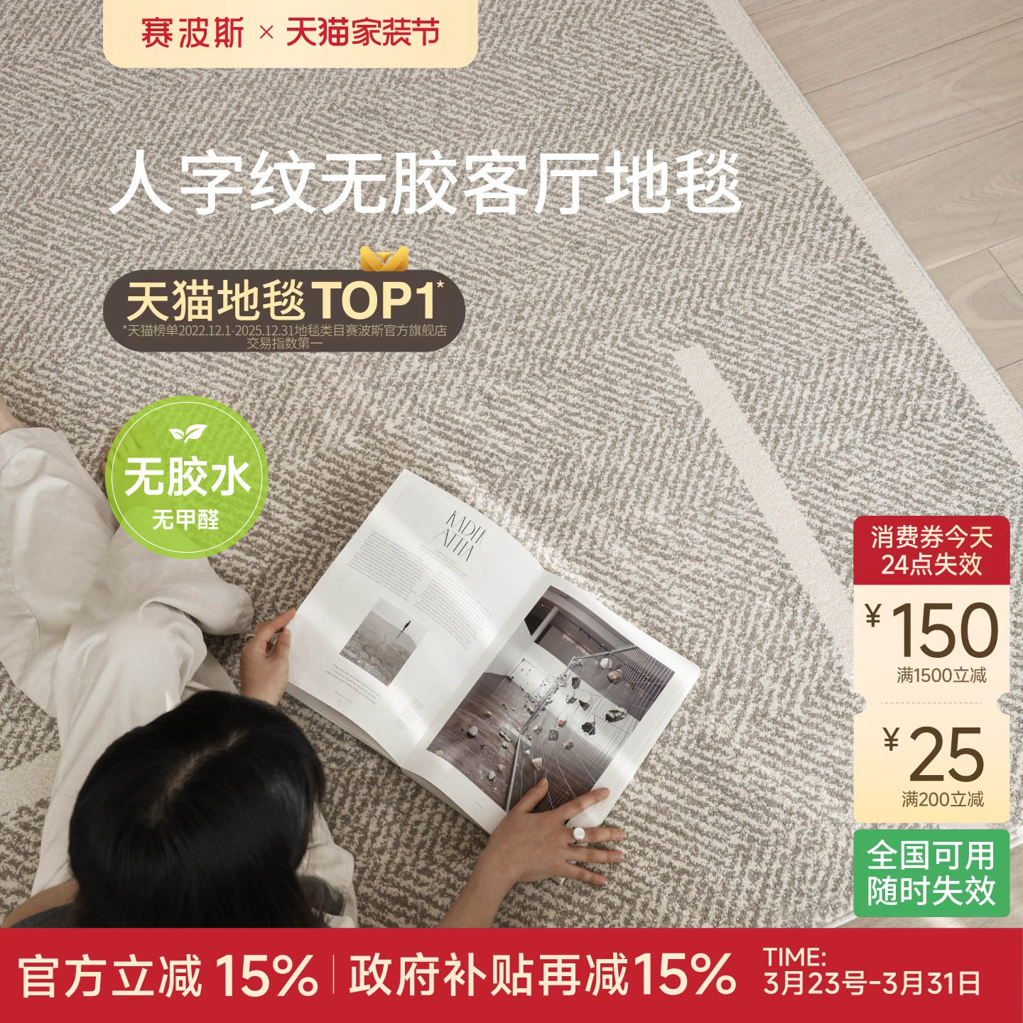赛波斯人字纹无胶防水地毯客厅现代轻奢简约抗污抑菌卧室青山美宿