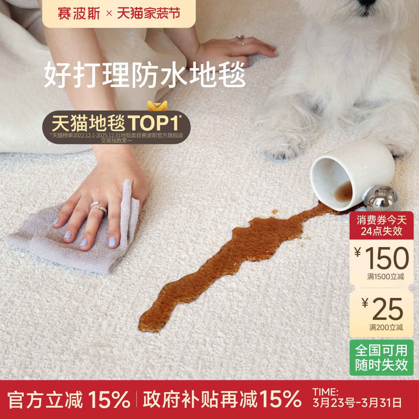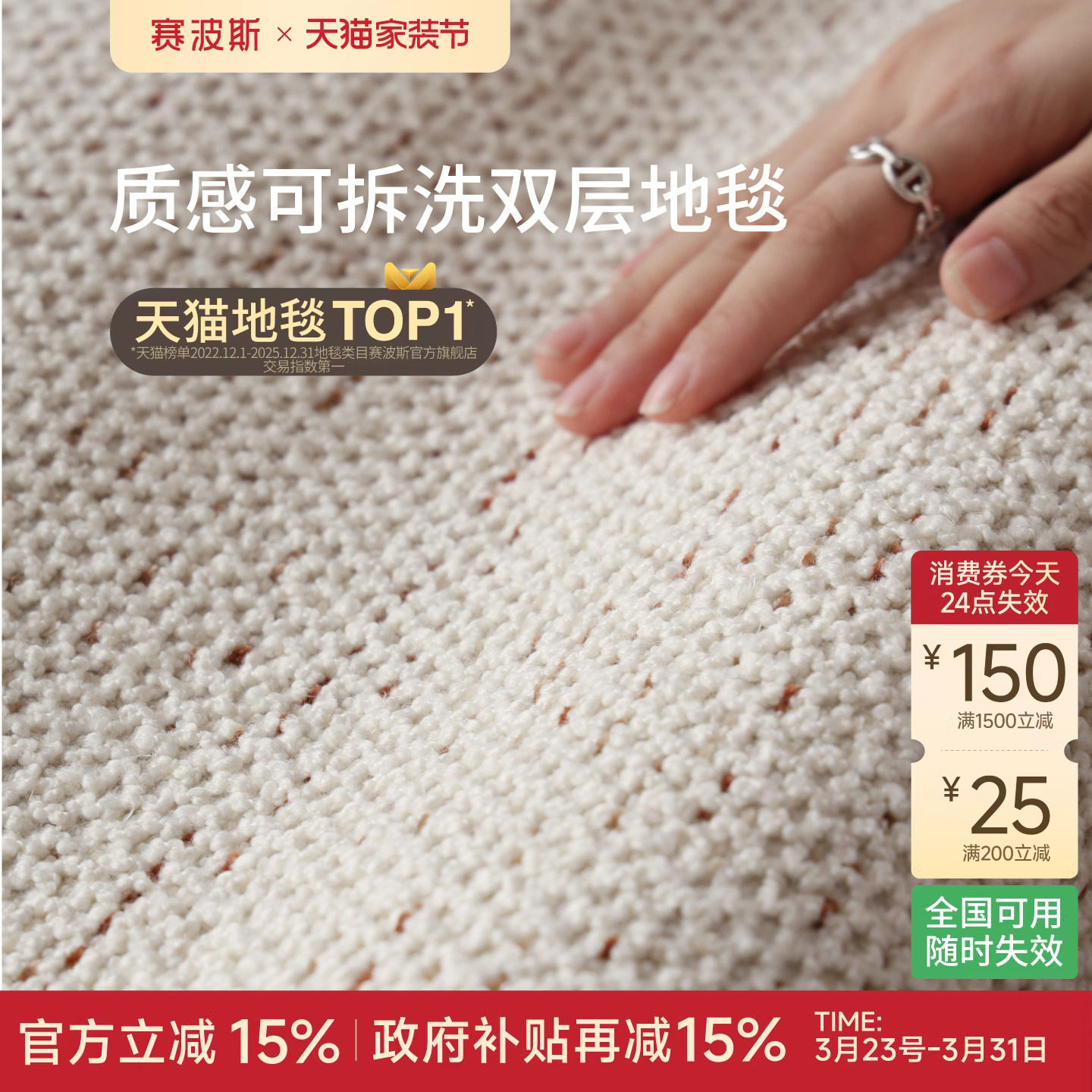 赛波斯白山茶可拆洗双层地毯客厅可机洗简约奶油风轻奢高级感卧室