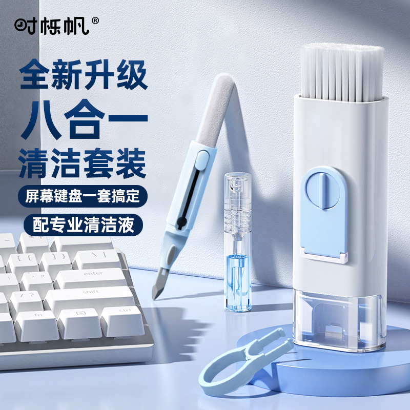 时栎帆键盘清理工具专用屏幕清洁剂笔记本电脑清洁套装除尘刷清洁剂键盘拔键器耳机手机清灰尘神器工具八合一