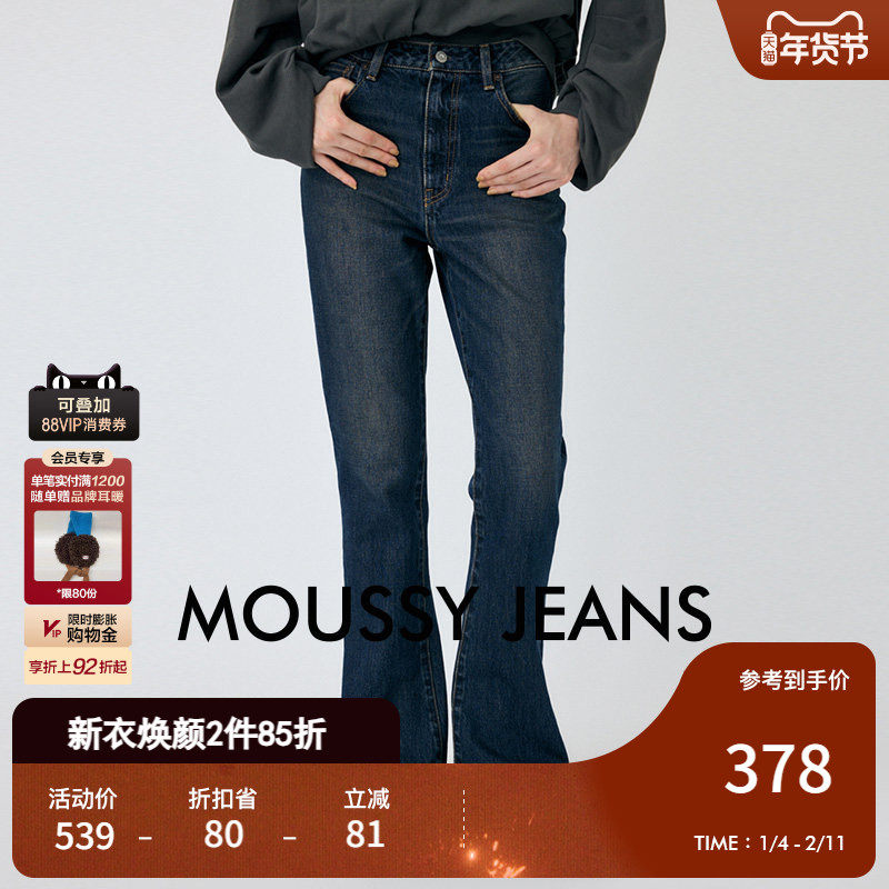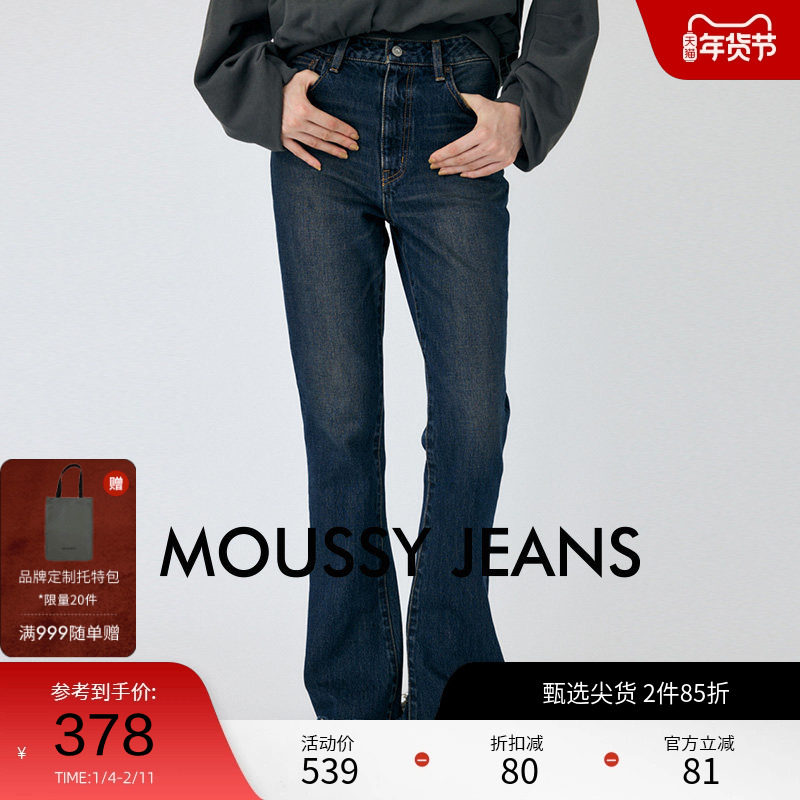 moussy 秋季新品复古做旧微喇裤棉质毛边牛仔裤010HAH11-6361