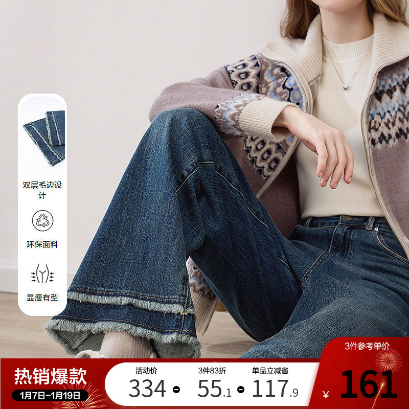 播商场同款复古微喇裤女25春秋新款高腰显瘦毛边牛仔裤BDS1KD1504