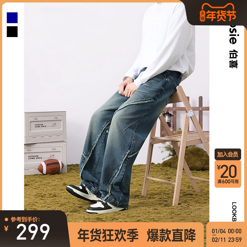 bosie伯喜2025年秋季新款cleanfit毛边牛仔裤男情侣微喇直筒裤子