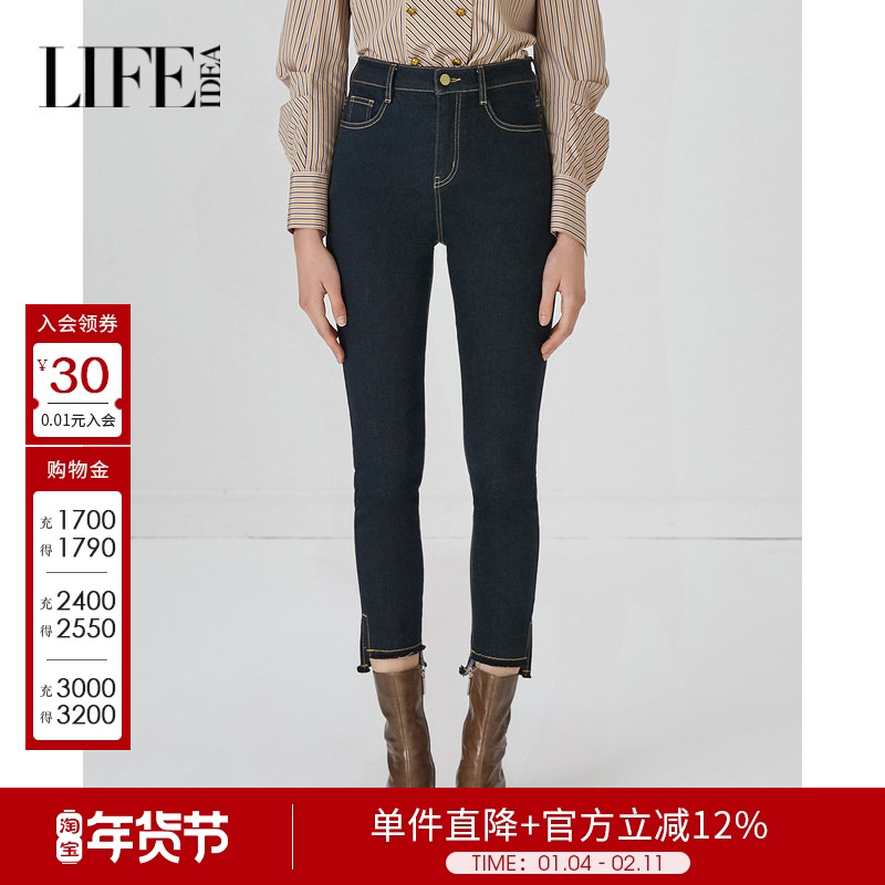 莱芙艾迪儿毛边牛仔裤秋季修身显瘦小脚铅笔裤休闲裤1E3K77042
