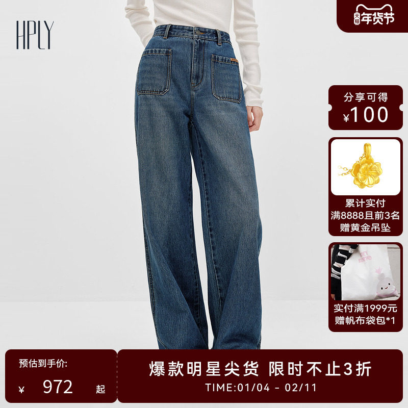 【商场同款】HPLY荷比俪2026春新款纯棉直筒阔腿自然毛边牛仔裤