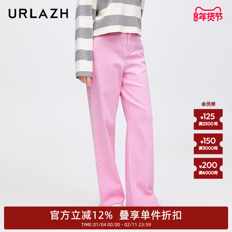 URLAZH有兰新款糖果粉色甜美减龄毛边设计感宽松直筒毛边牛仔裤女