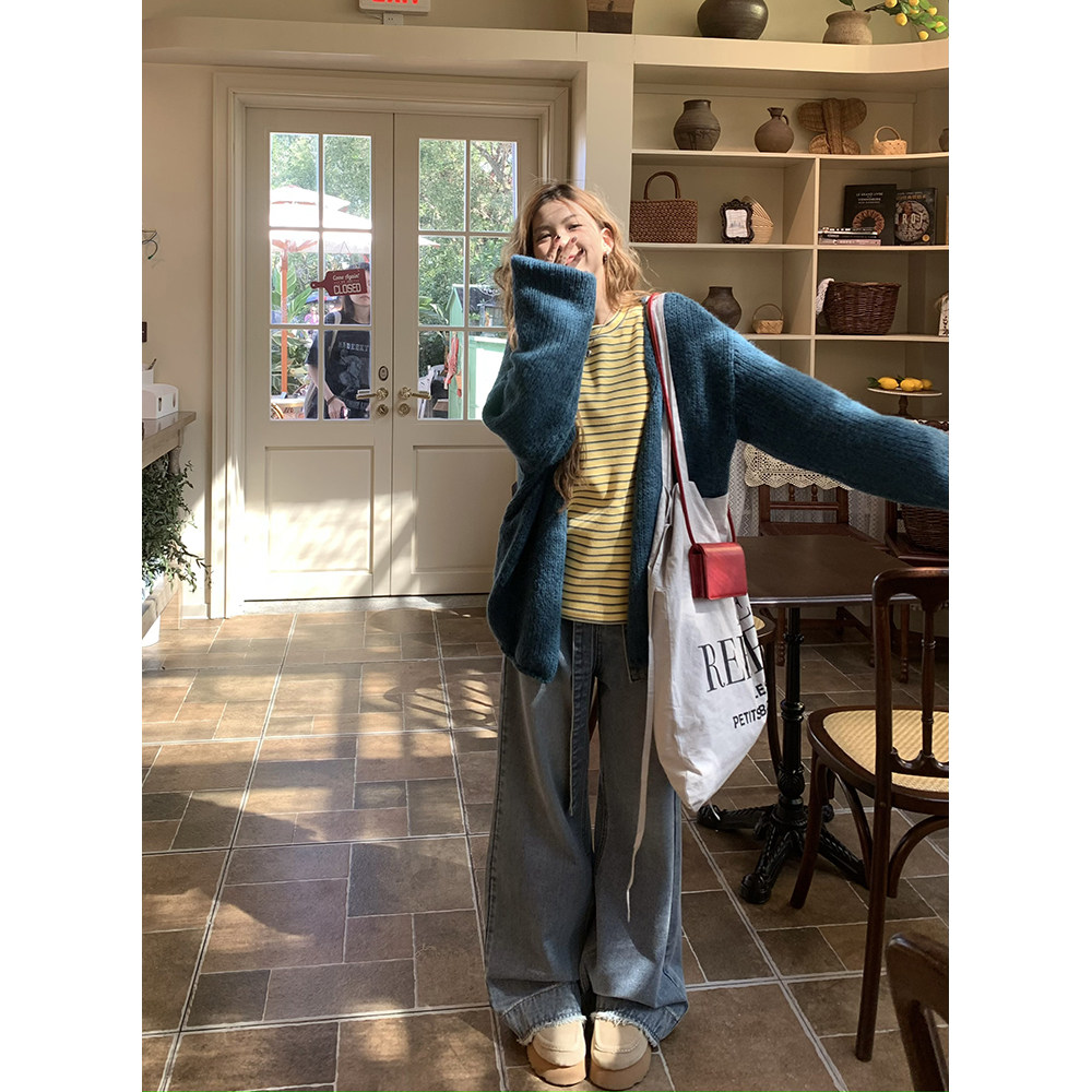 - 秋冬牛仔阔腿裤