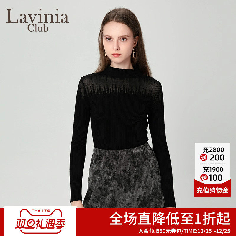 Lavinia早秋新款通勤气质半高领蕾丝拼接针织衫毛衣女V47Z118