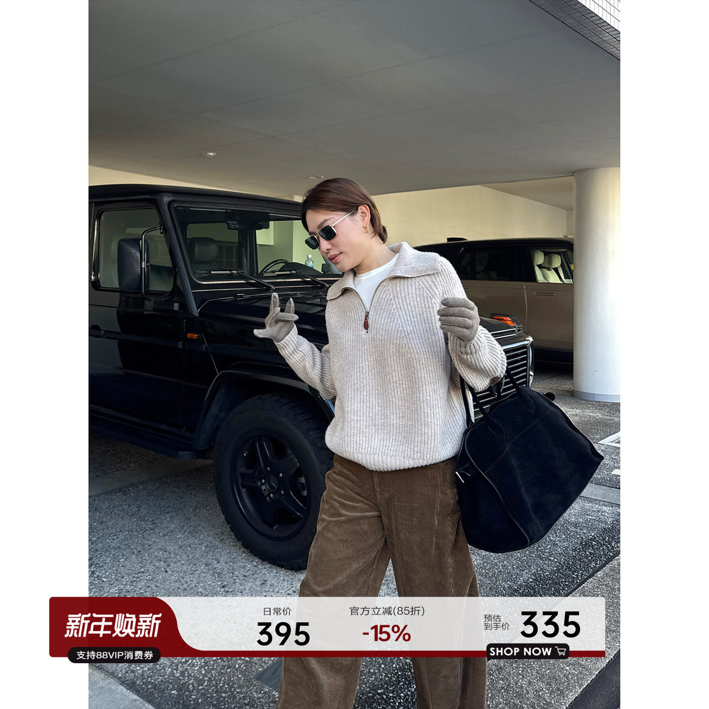 爱情魔鬼鱼 米白色拼接撞色半拉链高领毛衣女2025年冬季套头上衣
