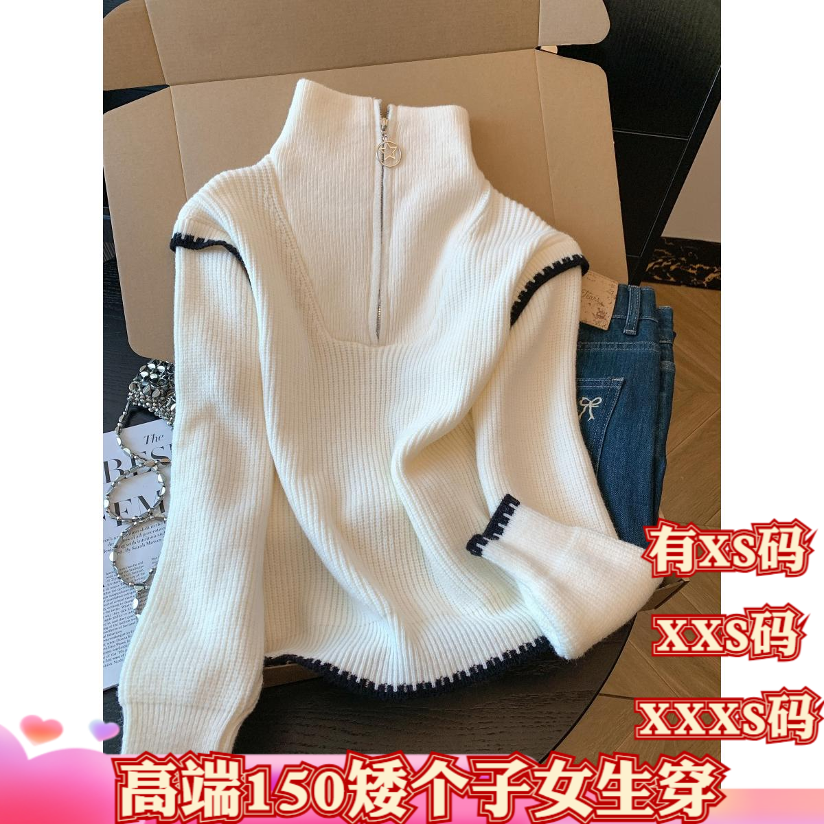 女装冬装矮个子150cm加小码显高XXXS半拉链高领毛衣女拼接针织衫